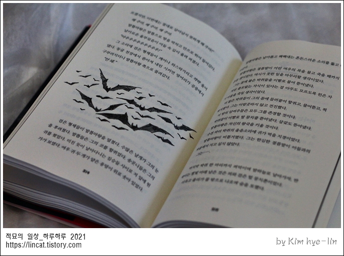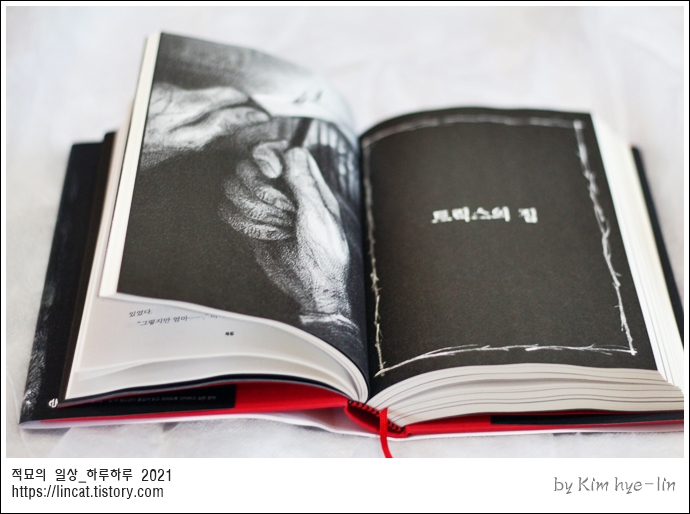 두께의 양장본을 펼쳐봅니다.