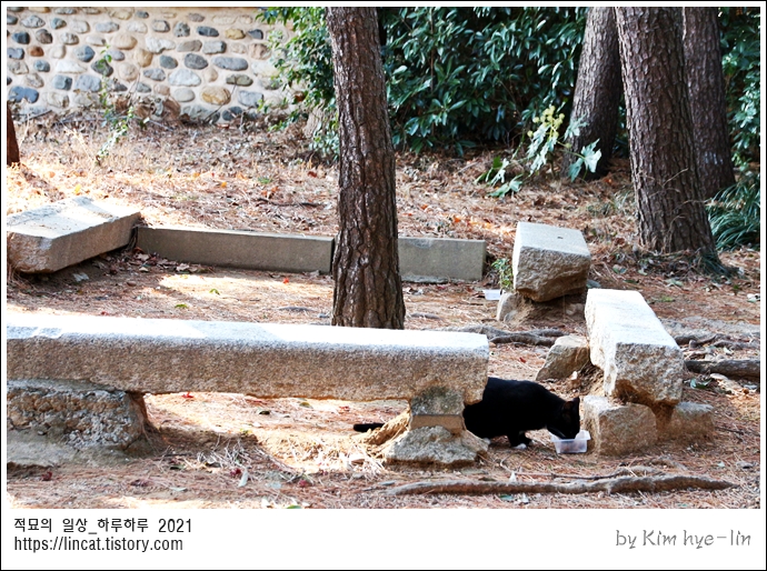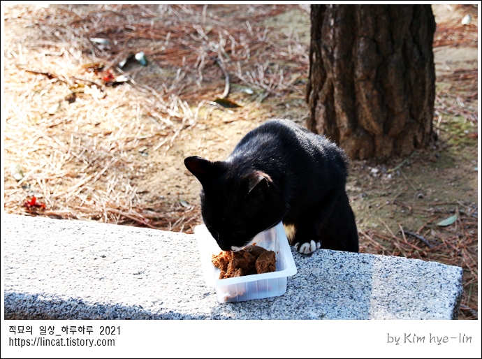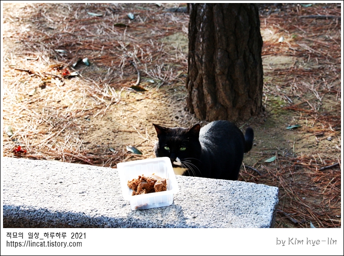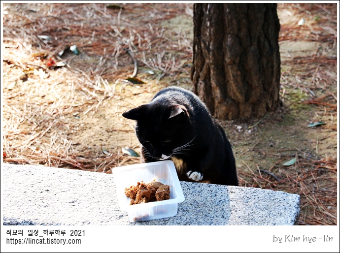 까망 고양이는 열심히 먹고 슬쩍 보더니