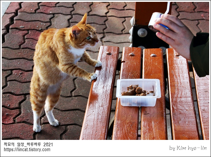 우리동네 고양이들은 정말.... 먹다가도 확 도망가는데
