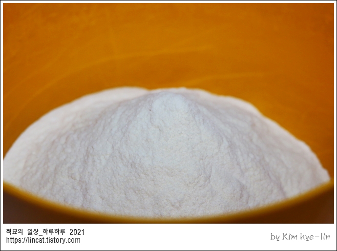 밀가루는 좀 거친....단백질 함량이 좀 높다는