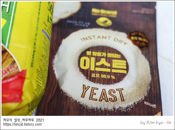 1. 밀가루 500g, 이스트5g, 다음엔 줄여볼 것!!!