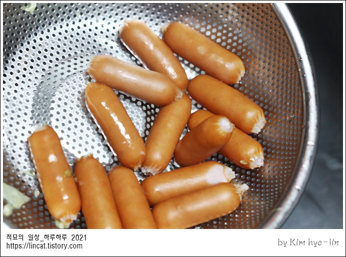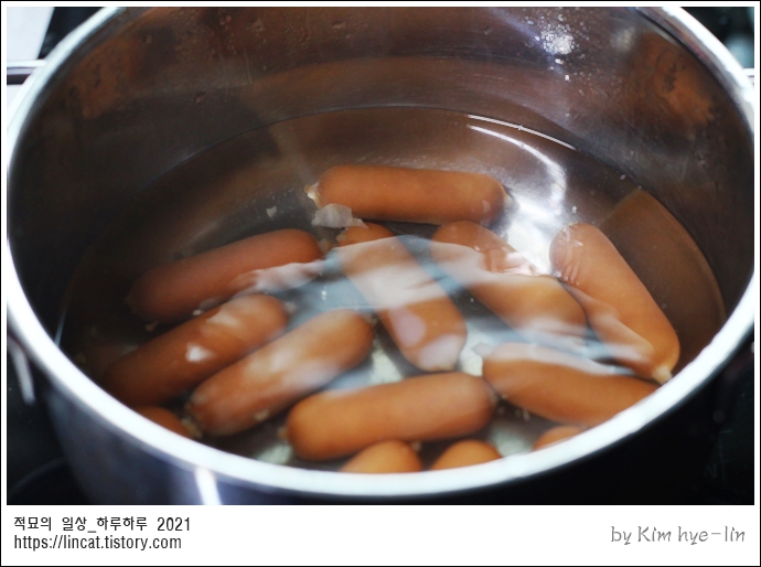 물이 파르르 끓을 때 소세지를 툭!!!