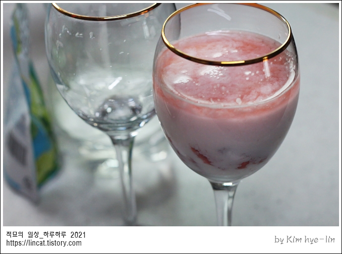 우유를 부어주면 그대로 딸기가 맛나게 씹히는