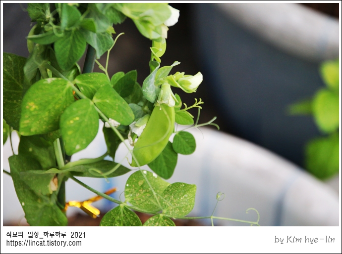 완두콩이 하나둘 자라는 여름