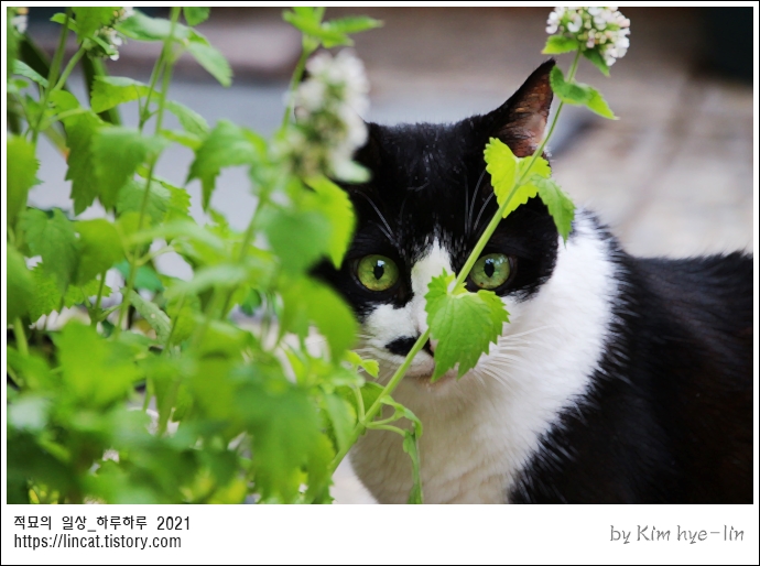 캣닙 뒤에 숨어서