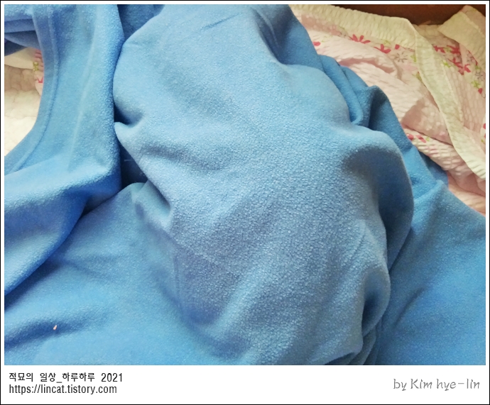 따뜻하게 만들어 놓은 담요에서 나갈 생각1도 없는