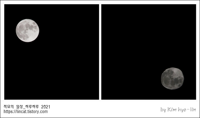 큰 기대 하지 않은 달을 제대로 보게 되네요.