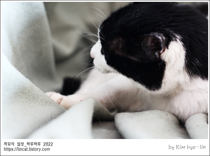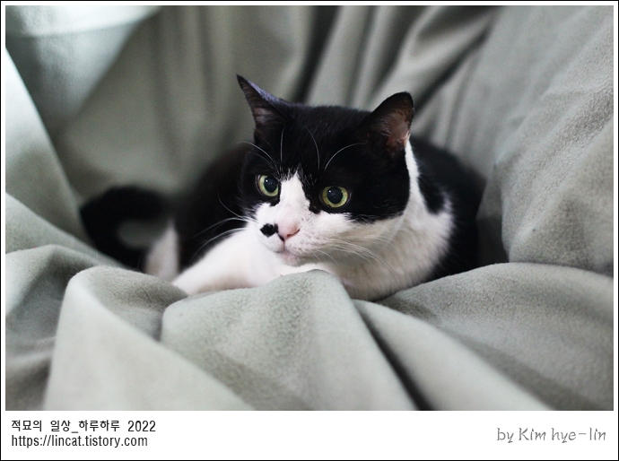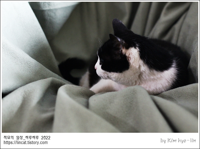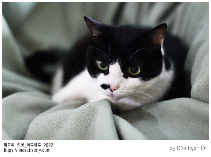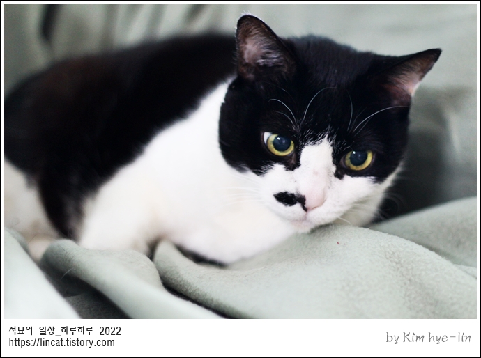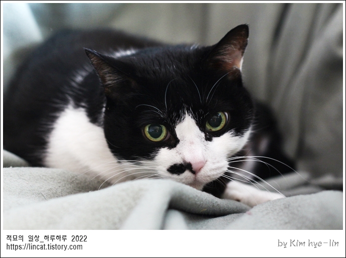 깜찍할묘니의 매력은 가면을 쓴 듯한 얼굴 코 옆 물고기 모양의 점 그리고 각도에 따라 달라지는 턱시도 라인!!! 중성화 하고 나이들면 다 그렇지만 역시나 도통 움직이지 않는 할묘니는 요래 찍