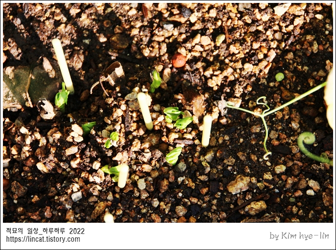 겨울에 강한 완두콩 화분에 솔솔 뿌려주었답니다.