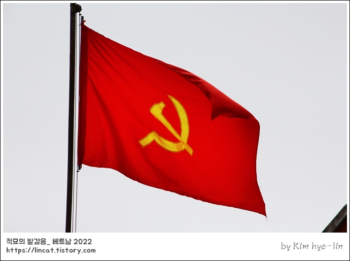 옛 기차역에 휘날리는 옛 공산당 깃발...