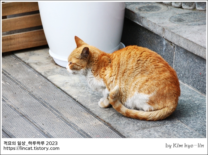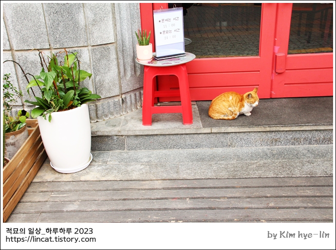 가게 사장님이랑 이 노랑 고양이에 대해서 이런 저런 이야기를 나눴답니다.