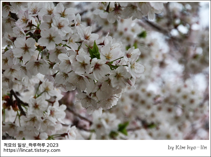 지난 주 비님이 오신다더니 비는 안오고.. 그래서 꽃봉오리 떨어지는 일 없이 꽃이 가득한 날 주말엔 팡팡 피어오르는 화사한 벚꽃이 만개한 온천천카페거리랍니다. 카페거리쪽으로는 흐드러지