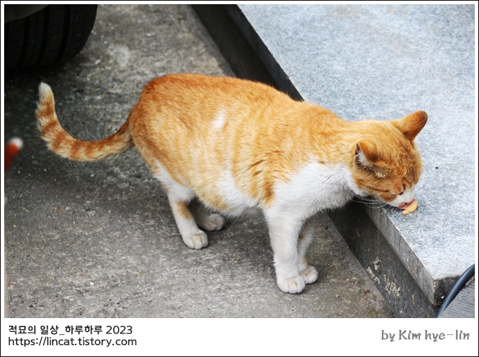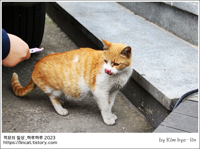 남의 영업장 앞에서 고냥이 간식 주기가 좀 그래..하고 있다가