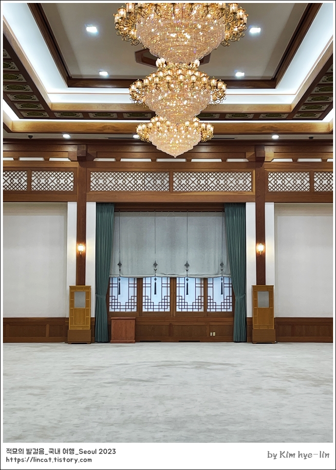 한국 전통 건축 특징을 여기저기 살리려고 신경쓴 것이 보입니다.