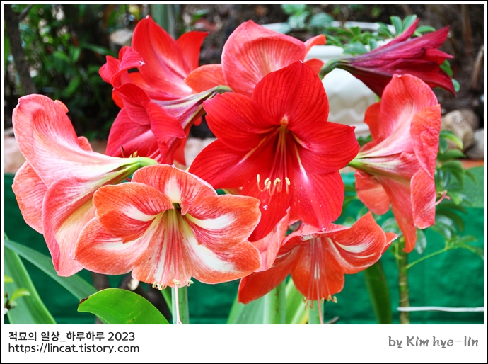 [적묘의 사진] 붉은 꽃,아마릴리스,Amaryllis,구근,독성,비오기 전후