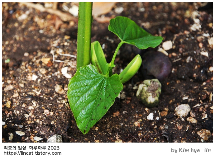 그래서 그 콩을 다 모아서 그냥 놔뒀던 걸 올 봄에 발아해서 심었답니다.