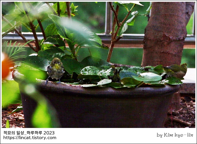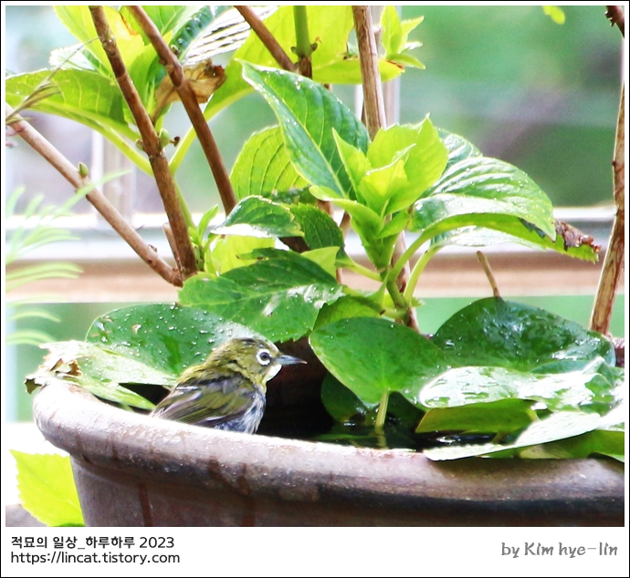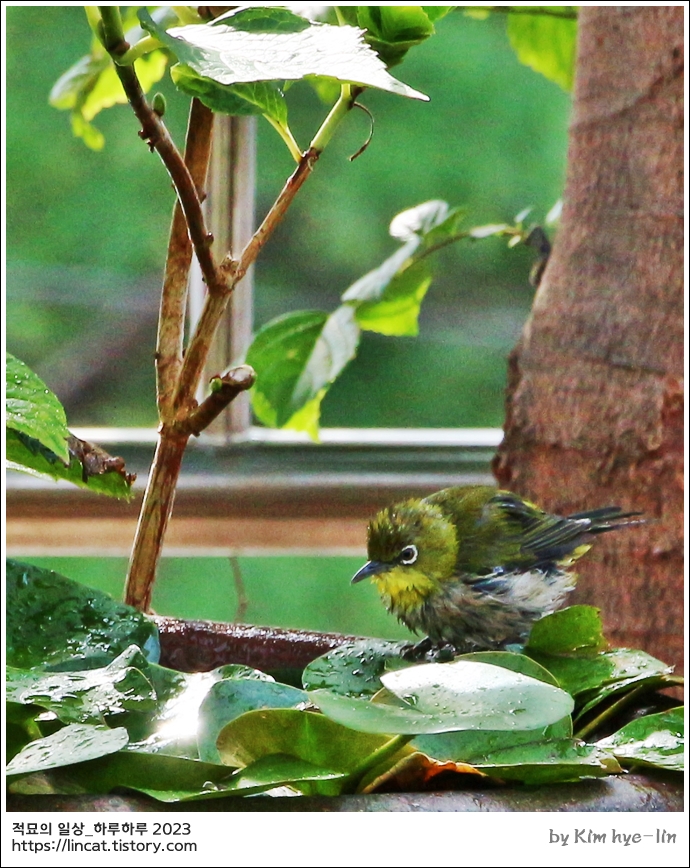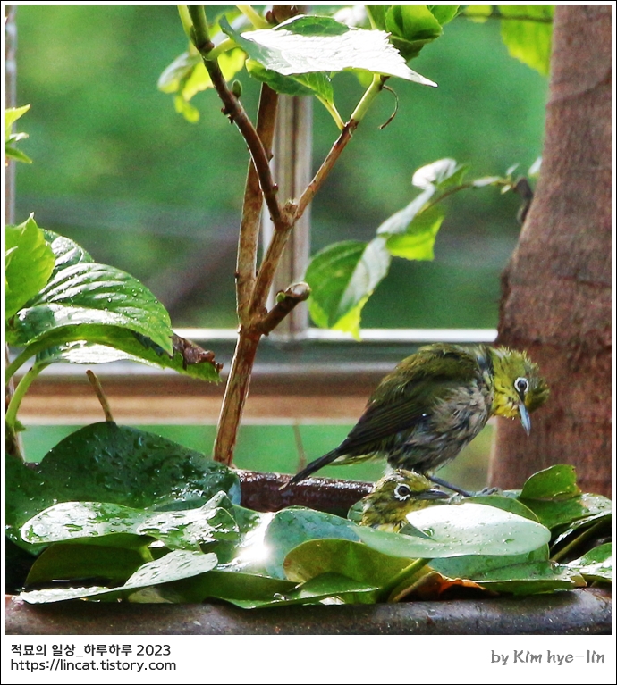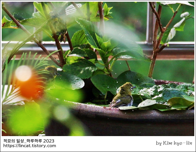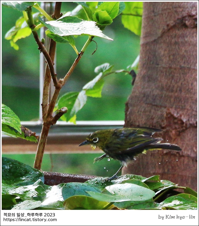 그래서 이렇게 찬물 목욕도 신나게 즐기는 동박새랍니다~~~~