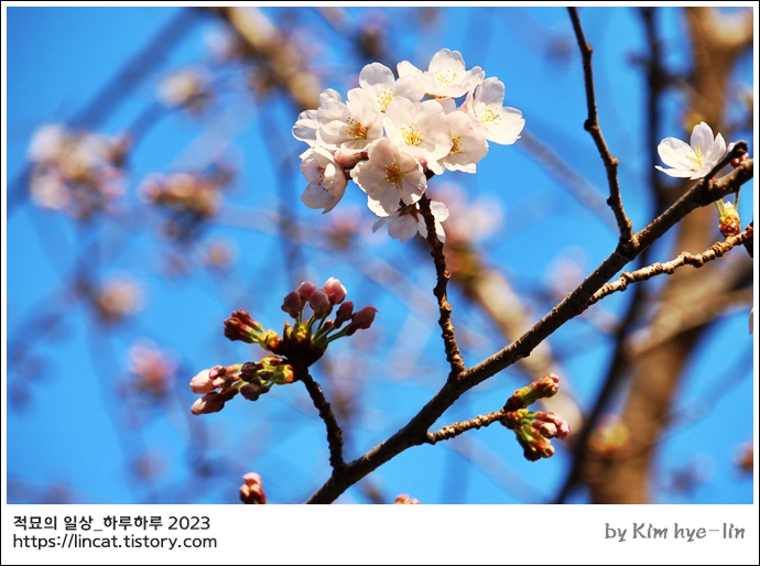 역시 매년 비슷하게!!! 부산은 3월 중순 지나면서 낮은 정말 햇살이 따끈따끈 따뜻한 남쪽나라입니다. 꽃이 피기 시작해서 햇살 좋은 곳은 온갖 꽃들이 피고 지고.... 하루 이틀이면 요 몽글몽글한 꽃봉오리들이 톡톡!!! 팝콘처럼 확!!!! 이 사진이 사흘 전이니까요. 벚꽃놀이는 이번주말부터 대략 4월 첫주까지 꽃놀이와 벚꽃엔딩을 충분히 즐길 수 있을거 같아요. 월드엑스포 2030 부산 유치를 위한 포토존이 여기저기 설치되었어요. 며칠 안 왔다고 이래 바뀌나? 밤엔 조명이 들어오려나요? 요렇게 핫핑크 꽃 포토존도 있어요. 이 나무가 다른 벚꽃 나무보다 쫌 늦게 피고 오래 가는 나무예요. 온천천 벚꽃들의 수종이 다 같은 것이 아니기 때문에 그리고 해닿는 위치도 다르니까요. 그 아래 하뚜 뒤집힌 포토존~ 사이..
